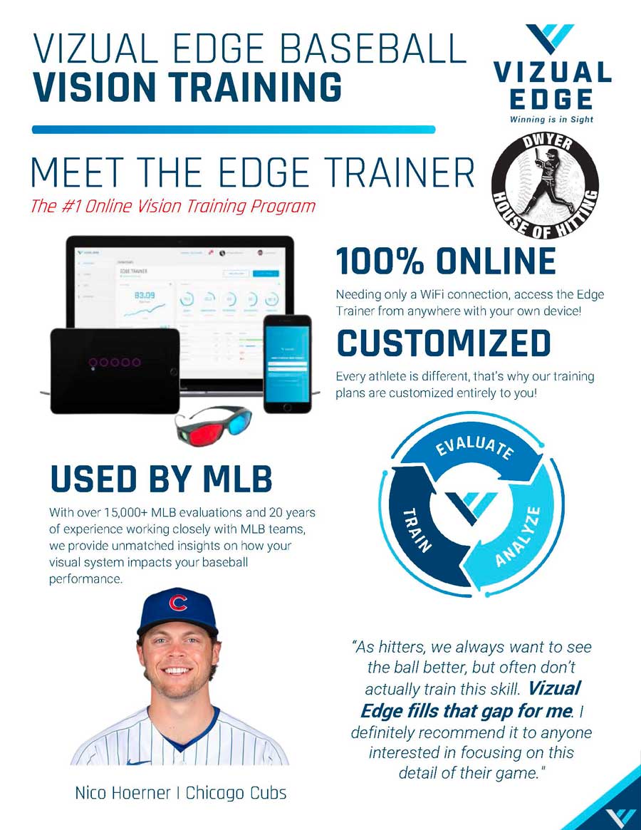 The Edge Trainer from Vizual Edge delivers the most advanced sports vision training available right from your own device. Backed by nearly 30 years of data and research, the Edge Trainer’s web-based program is proven to help enhance timing, balance, eye-hand coordination, positional and spatial awareness, reaction speed and more to give you an edge in your sport!